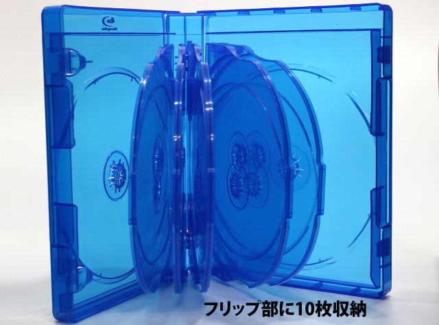 ・27mm厚のケースに12枚のブルーレイディスクを収納可能です。 ・Blu-rayDiscロゴ有り専用ケース ・1枚1枚のディスクをしっかり保持。必要なディスクだけ取り出し可能。 ・ケース内1ページ目には冊子を挟むクリップ付き。ケース外側にはジャケットを挟むフィルム付。 ・ケースサイズ→横136×縦172×厚さ27mm